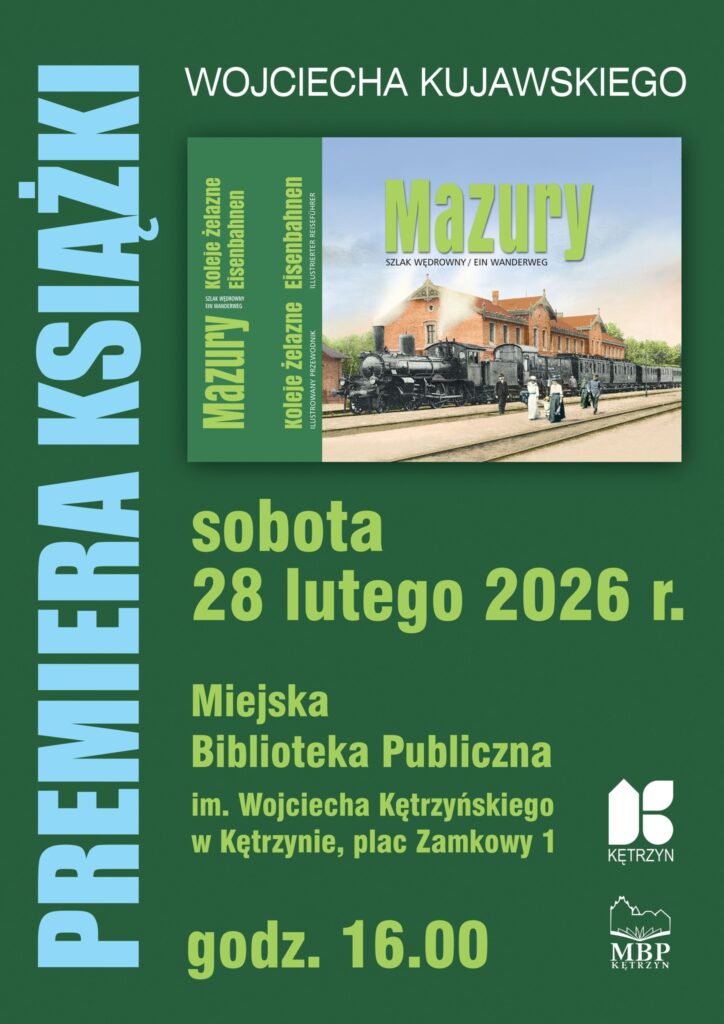 Zapraszam 28 lutego 2026 r. o godz. 16:00 do Miejskiej Biblioteki Publicznej w Kętrzynie na premierę książki „MAZURY · BARCJA · PRUSKA LITWA. Koleje żelazne”. Przy okazji będzie to skromne zaakcentowanie 20 lat działalności Wydawnictwa QMK, a przed spotkaniem autor proponuje wspólny spacer krajoznawczy po Kętrzynie ze szczególnym uwzględnieniem miejsc tematycznie związanych z nową książką.