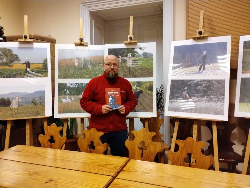 Po spotkaniu oczywiście autografy i… specjalne zdjęcie Autora wśród… trochę innych Ziemian, czyli na tle strachów polnych, w fotografii Zbigniew Sewerniak.