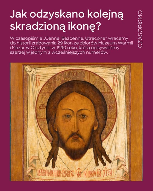 W artykule wspominała również, że resort kultury prowadzi działania zmierzające do odzyskania kolejnych dwóch ikon z Olsztyna. Jedna z tych spraw niedawno zakończyła się sukcesem. 17 kwietnia 2025 roku w Muzeum Warmii i Mazur odbyło się uroczyste przekazanie trzeciej – już odzyskanej – ikony ze skradzionego zbioru 29 dzieł sztuki. Ta ikona to Mandylion – oblicze Chrystusa w nimbie krzyżowym, ukazane na tle białej chusty rozpiętej za dwa górne rogi.