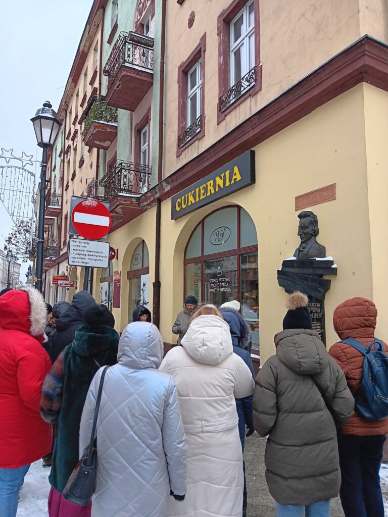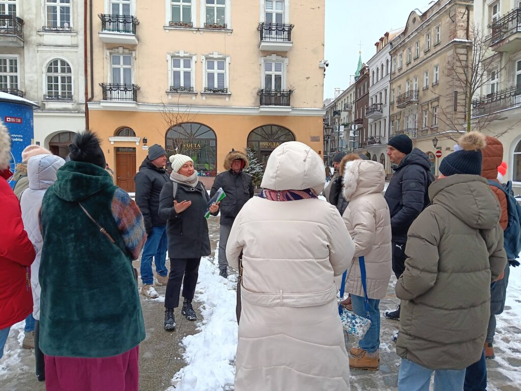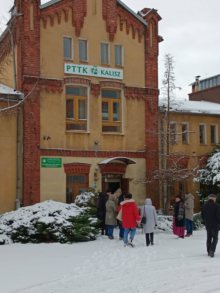 Na mecie naszego spaceru nie zabrakło także wzmianki o 120 rocznicy powstania Polskiego Towarzystwa Krajoznawczego oraz Stanisławie Graeve – założycielu oddziału PTK w Kaliszu. Humory dopisywały, a aura sprawiła nam nie lada niespodziankę i na czas spaceru miasto okryło się białą śniegową pierzynką dodając niepowtarzalnego klimatu naszej wyprawie.