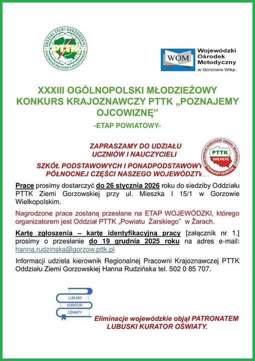 Poniżej link: regulamin Konkursu, zgłoszenie- karta indentyfikacyjna pracy, oświadczenie uczestnika i jego opiekunów prawnych.
