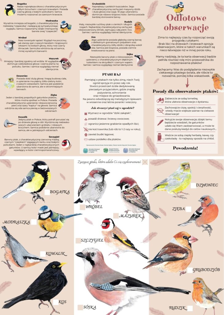 Zespół Parków Krajobrazowych Województwa Wielkopolskiego przygotował kartę obserwacji, czyli mały, ale sprytny przewodnik, który pomaga rozpoznawać gatunki i notować odkrycia.