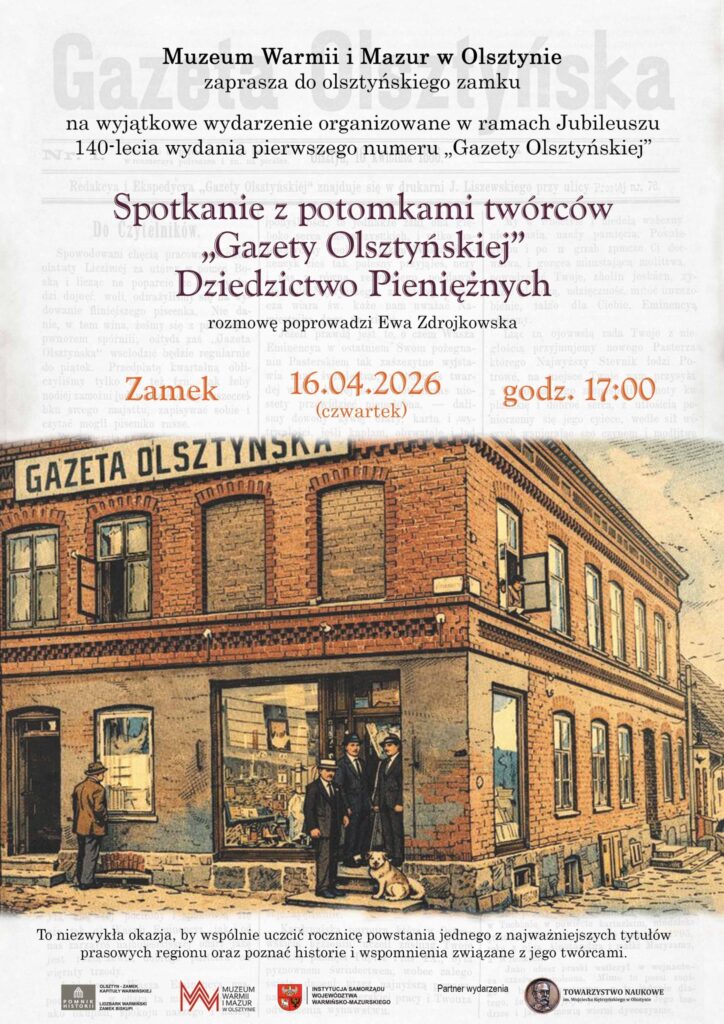 Muzeum Warmii i Mazur w Olsztynie zaprasza do olsztyńskiego zamku na wyjątkowe wydarzenie organizowane w ramach jubileuszu 140-lecia wydania pierwszego numeru „Gazety Olsztyńskiej”. Spotkanie z potomkami twórców „Gazety Olsztyńskiej”. Dziedzictwo Pieniężnych.
