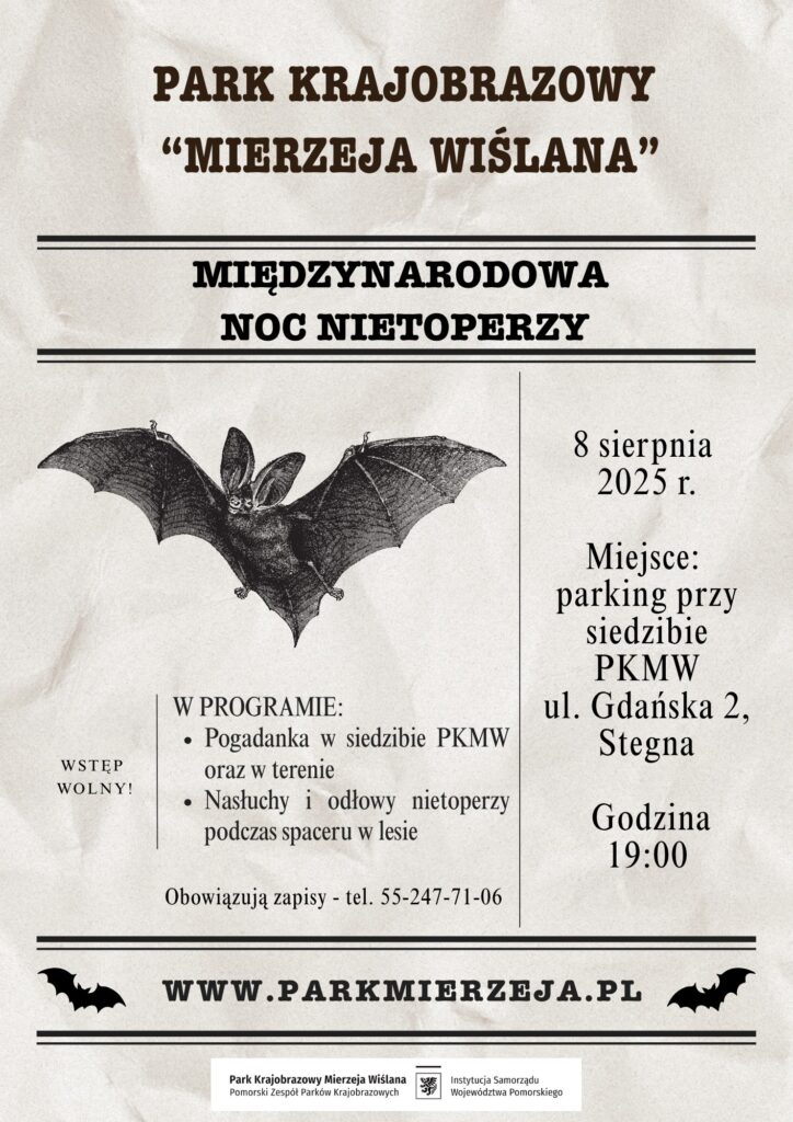 Noc Nietoperzy to wydarzenie organizowane od 1997 roku w ponad 30 krajach w ostatni pełny weekend sierpnia. Instytucje związane z ochroną przyrody, organizacje pozarządowe z całej Europy edukują społeczeństwo w zakresie biologii i potrzeb nietoperzy. Również Pomorski Zespół Parków Krajobrazowych od wielu lat zaangażowany jest w badania, działania ochronne i edukacyjne na rzecz tej wyjątkowej grupy ssaków. W 2024 roku pracownicy PKMW zorganizowali I Noc Nietoperzy na Mierzei Wiślanej. Warsztaty spotkały się z dużym zainteresowaniem społecznym.