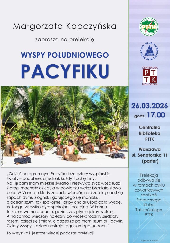 Centralna Biblioteka PTTK w Warszawie i Stołeczny Klub Tatrzański PTTK zaprasza na spotkanie podróżnicze, podczas którego przeniesiemy się w egzotyczne rejony południowego Pacyfiku.